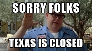 To the other 49 states, please note that because of global warming, the state of Texas is closed today due to sleet, snow, ice and well-digger cold temperatures.